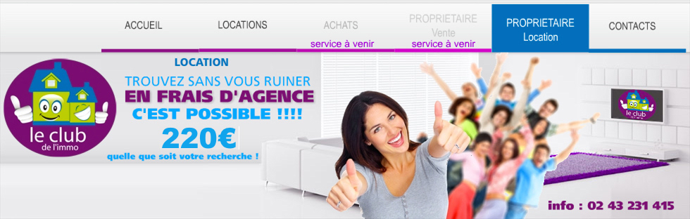 Nos offres de location sur Le Mans et la Sarthe Nos offres en ligne et en agence pour les locataires Les services que propose Le Club de L'Immo aux propriétaires de biens à louer Contacter Le Club de L'Immo